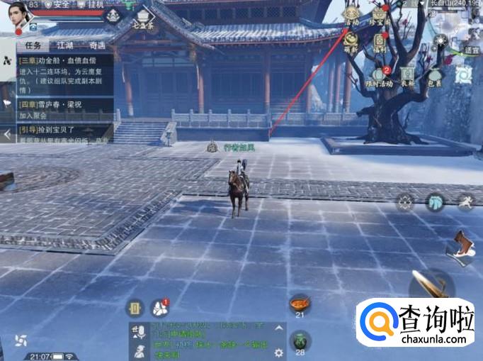 这样就会传送来到江南这个场景,之后找到NPC小二后点击跟他进行对话。