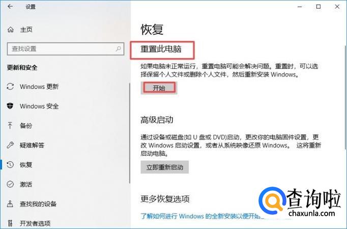 弹出的界面,我们点击重置此电脑中的开始;