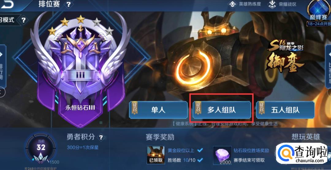 点击多人组队选项。