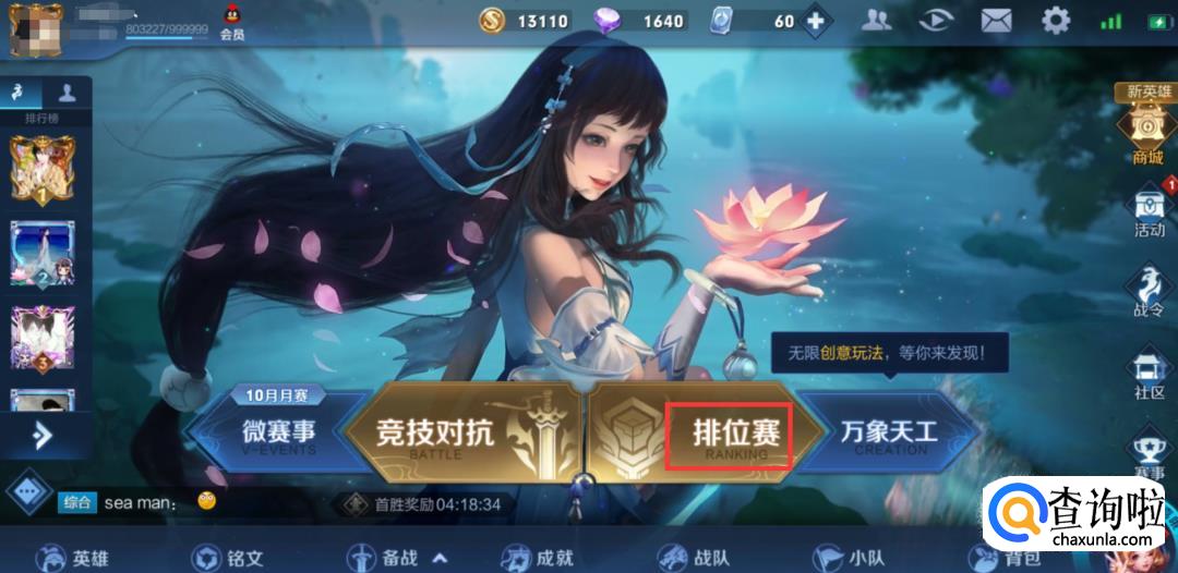 首先登陆王者荣耀游戏,然后点击排位赛。