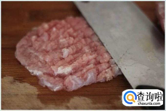 然后把洗干净的瘦肉用多剁碎,越碎越好,这样子方便宝宝食用,然后里面加上一些姜沫去腥。