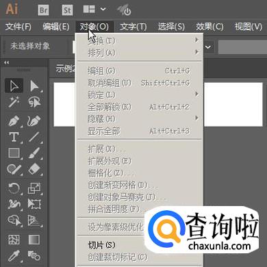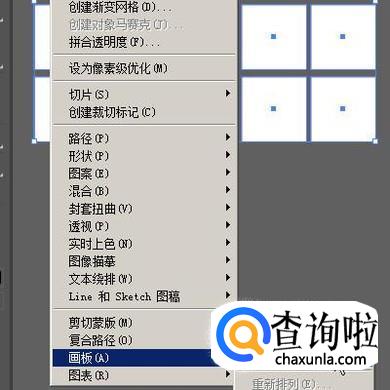 把这20个矩形全选中,鼠标再点菜单栏中的“对象”;展开的下拉菜单中再点“画板”,跟着再点“转换为画板”