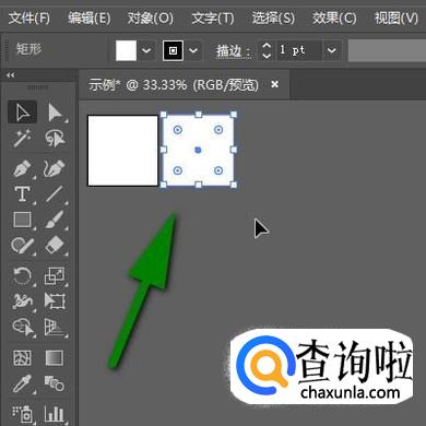 点确定后,生成一个200X200大小的白色矩形;并把矩形移到画板1上面,与画板1重合在一起。