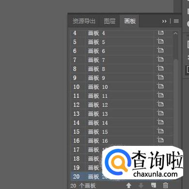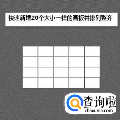 连续点击19次,那么,就新建了19个与画板1大小一致的画板。那么,现在屏幕上就有了20个画板了。而且都是每个画板之间的间距都是一致的。