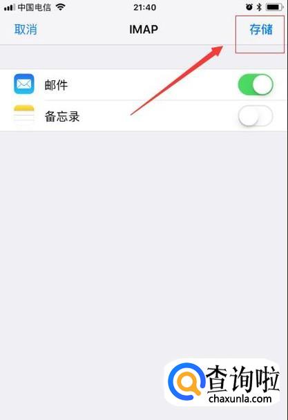 接着在IMAP界面,点击右上角储存;