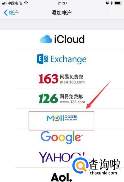 在添加账户界面,然后下面qq邮箱点击进去,如下图所示;