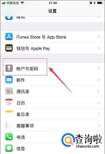 进入设置界面之后,点击账户和密码;