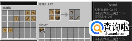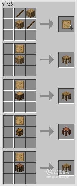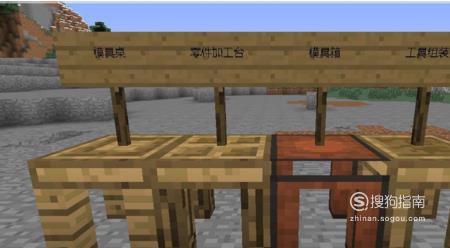 从上到下,依次为空白模板、模具桌、部件加工台、模具箱、工具组装台。,将它们全部合成出来需要【木板×15+木棍×2+原木×1】。