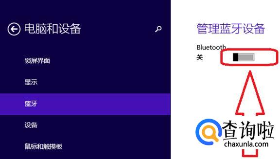 现在我们可以看到蓝牙是处于关闭状态的,点击开启它,如下图所示。
