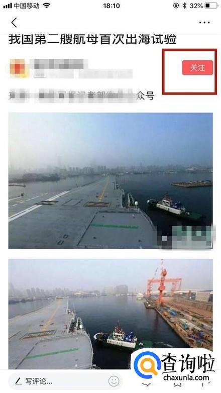 接着,点击屏幕右上方的关注,如下图所示。