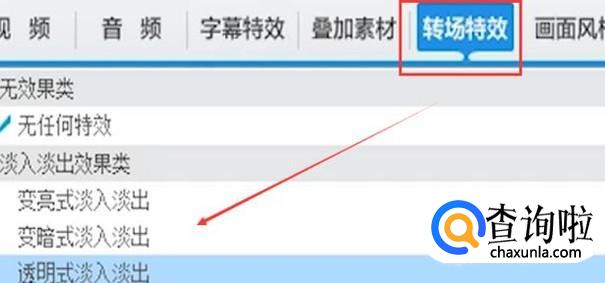 在“已添加片段”列表,选中要应用转场特效的视频片段缩略图。在“转场特效”面板的特效列表中,选中要应用的转场特效,点击“应用/修改”。
