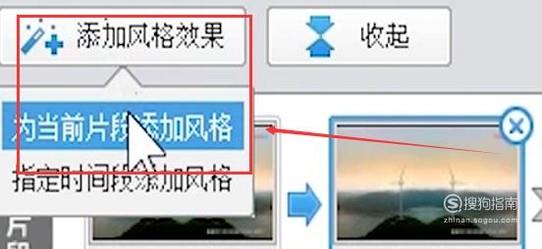 在画面风格面板的画面风格列表选中需要应用的画面风格点击“添加风格效果”——“为当前片段添加风格”——“确认修改” 。