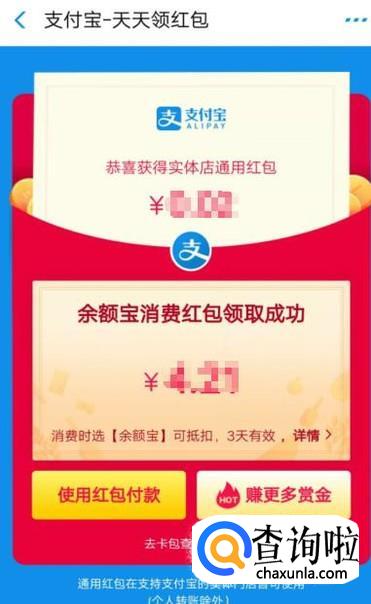 打开扫一扫功能之后,用该功能去扫描红包码即可得到支付宝余额宝红包,如图所示。