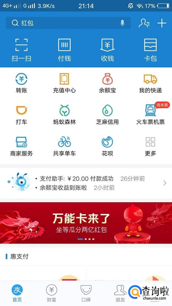 大家在平时都会用到支付宝,今天为大家讲解一下怎样得到支付宝余额红包。