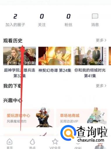 进入之后,点击“观看历史”,进入下一页面,如图所示。