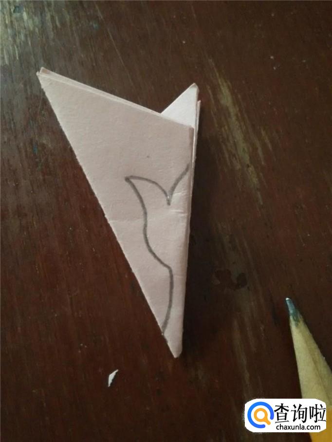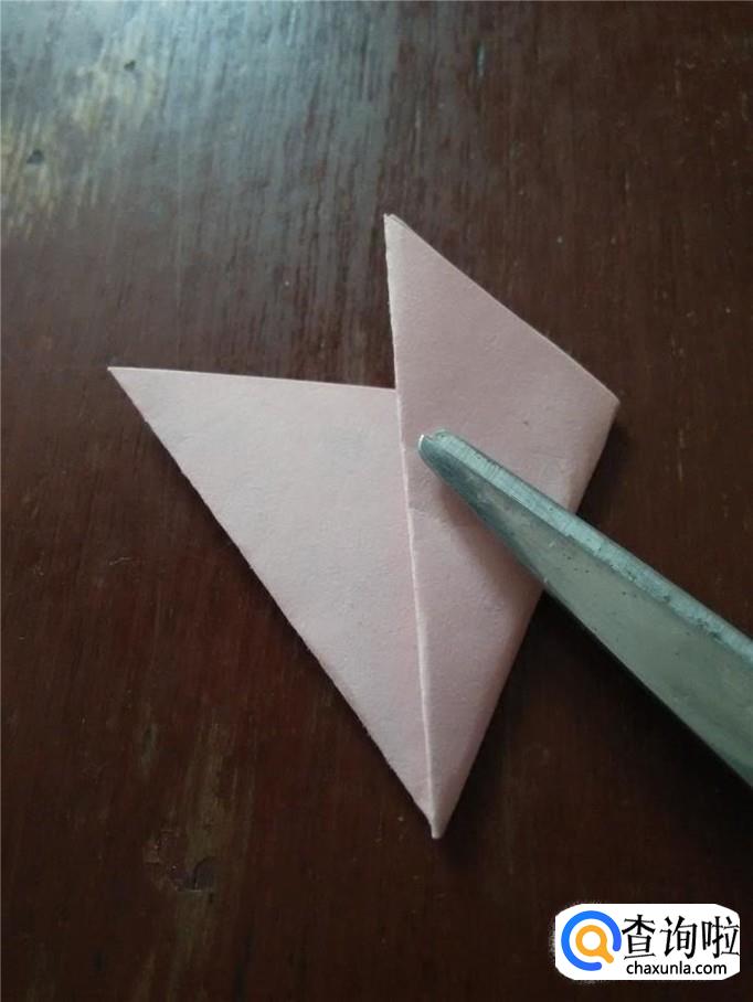 把彩纸角与角往上对折。
