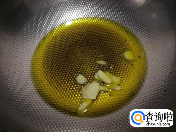 起锅烧热,下油,下蒜片爆香。