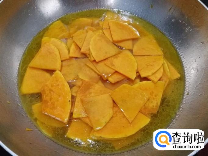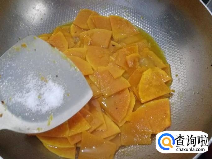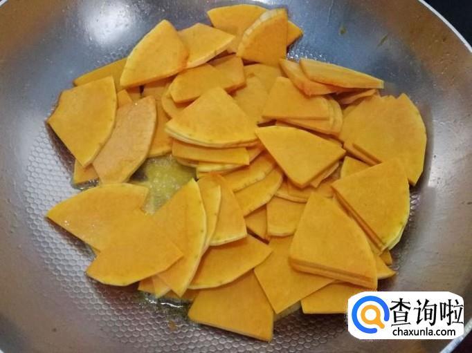 下南瓜片翻炒均匀。