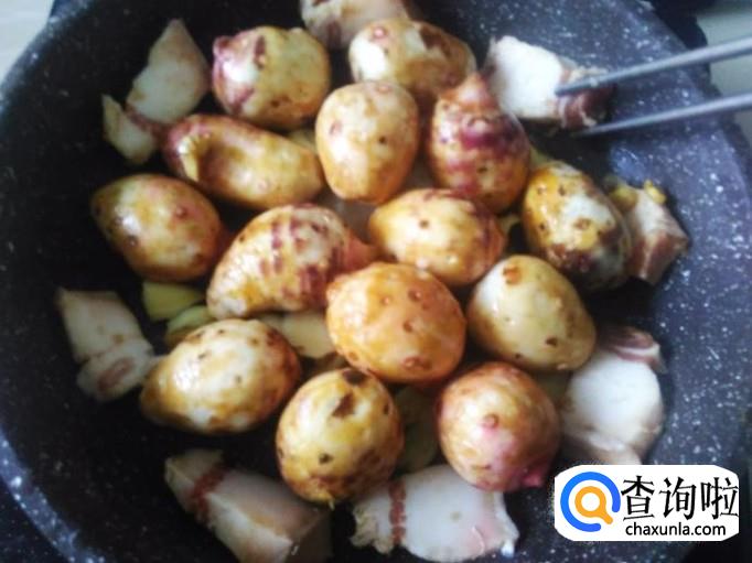 小芋头500克,五花肉200克,姜蓉、蒜米适量,1勺生抽,1勺料酒。
