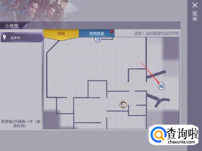 来到场景传送区域后,接着点击传送图标,下图箭头所指的图标就是传送图标。