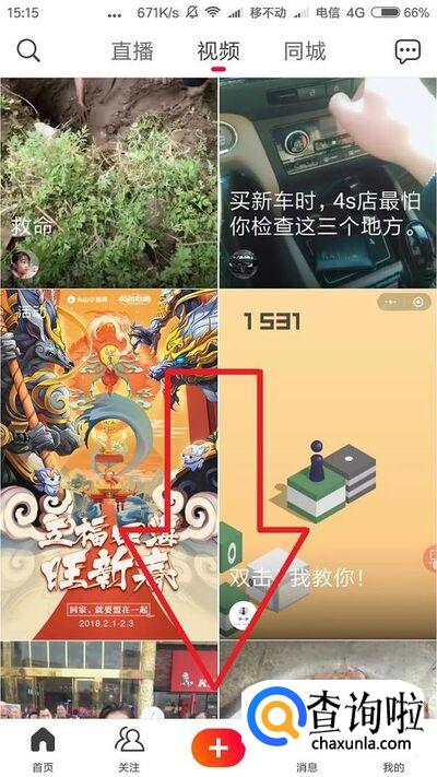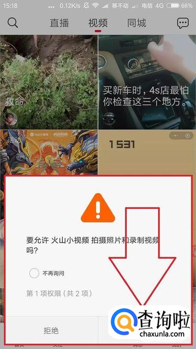 首先,我们打开手机上的火山小视频APP,然后点击正下方的“+”号,然后这时,手机就会弹出提示框询问你是否允许火山小视频APP使用录音拍摄权限,这里我们点允许就ok啦。