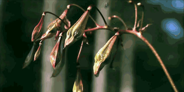 当果实成熟之后,稍微的风吹草动就会使得果皮从接缝处开裂,张力被瞬间释放使得果皮裂片向内卷起,种子便被“借力”弹出。