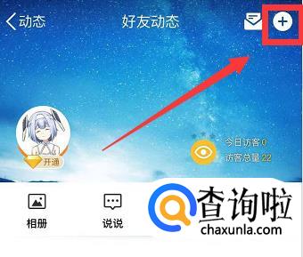 然后点击右上角的【+】号,发表自己喜欢的说说,或者优质的文章、唯美的图片等。