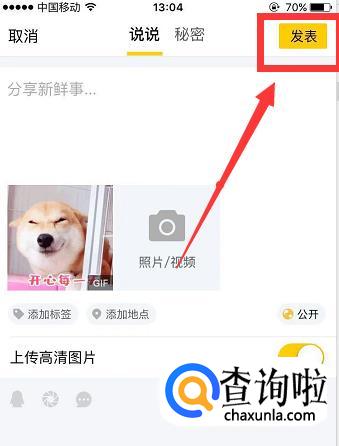 编辑完成后点击右上角的【发表】,好的动态能为自己赢来一大波关注和访问哦。