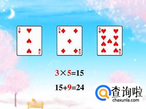 24点要求四个数字运算结果等于二十四,每张牌必须用且只能用一次。如抽出的牌是3、8、8、9,那么算式为(9-8)×8×3=24。