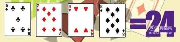 拿一副牌,抽去大小王后(也可以把J/Q/K/大小王也拿去),剩下1~10这40张牌(以下用1代替A)。任意抽取4张牌(称为牌组),用加、减、乘、除把牌面上的数算成24。每张牌必须用且只能用一次。