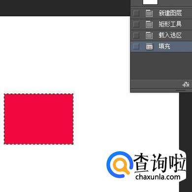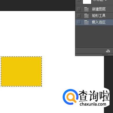 接下来说下第二种方法。比如,新建画布后,第一步操作,新建了一个空图层;第二步操作是用矩形工具画了一个黄色矩形;第三步是选中矩形(也就是载入选区);第四步是把矩形颜色填充为红色。第五步取消矩形的选择状态。