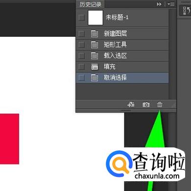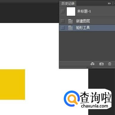 比如,再撤回到上一步操作:选中矩形;那么“填充”这一步在选中的状态下,再按下小面板右下角的删除按钮,在弹出的询问框中点击是。那么,就撤回到了上一步操作了。如此类推,要撤回上一步操作,在历史记录面板这里把当前操作删除。