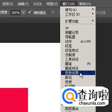 接下来,在软件界面上方的菜单栏中点击“窗口”,在展开的内容中找到“历史记录”,点击一下,把“历史记录”的小面板给调出来。
