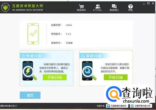 然后软件会有两个扫描功能,这个时候我们只需要选择快速扫描就好了。然后使用这个扫描功能对手机里面的数据进行扫描。之后等软件扫描出手机里面的数据。