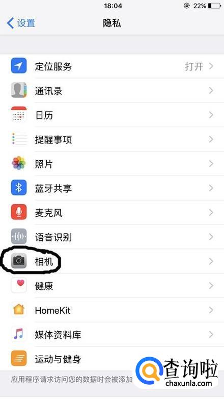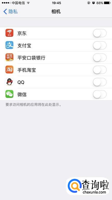 然后选择自己想让哪个软件访问手机相机,直接打开开关即可。