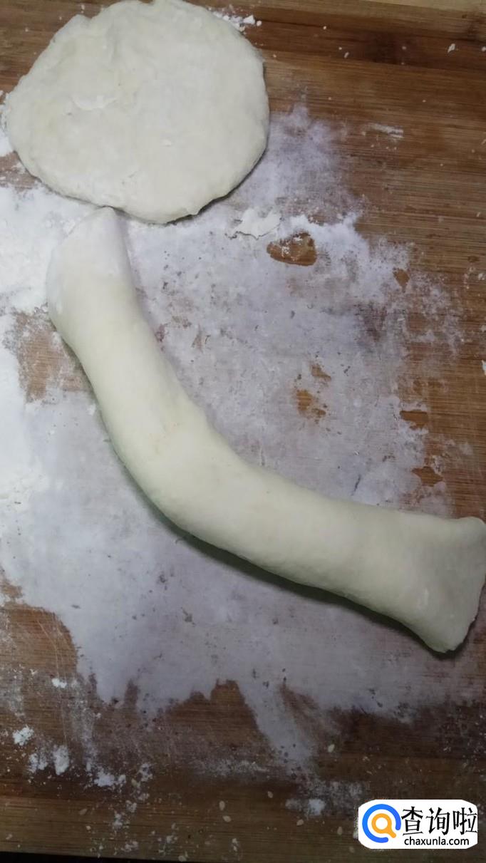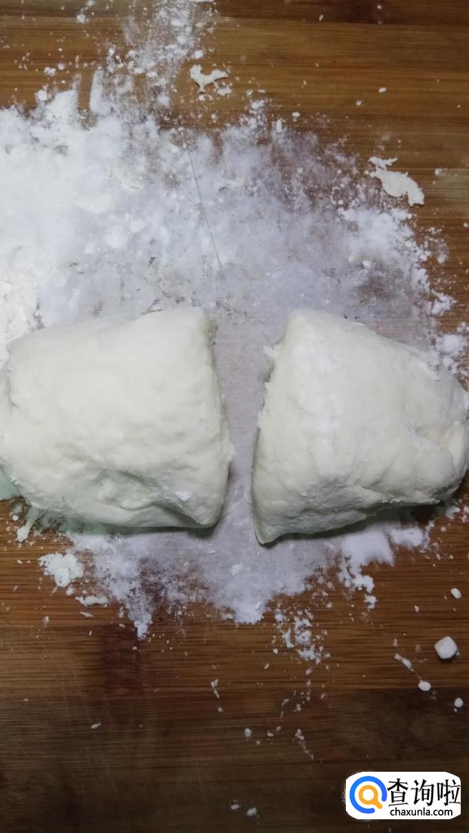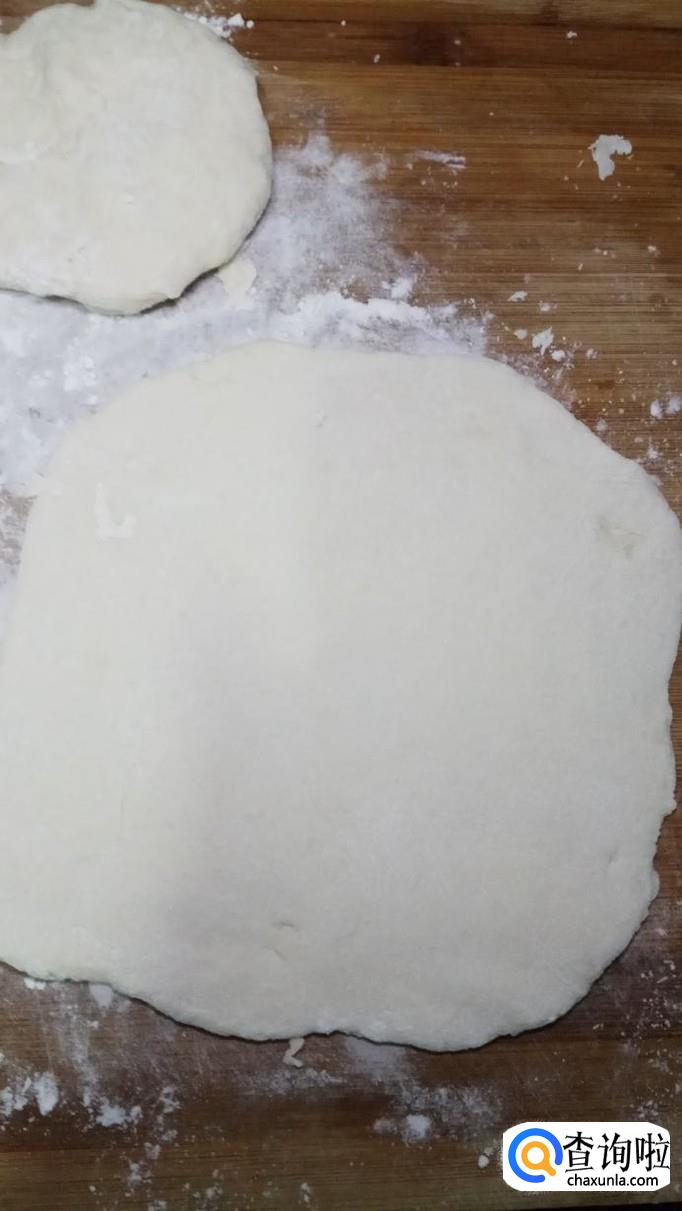 和好的面团醒15分钟左右,然后分成小剂子,用擀面杖擀成面片,可以尽量擀薄一些。