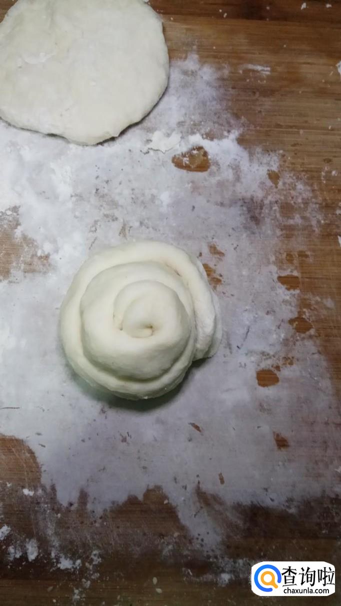 从一头卷起来,然后再盘一下,盘成如图所示的形状。