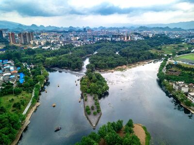 灵渠位于桂林兴安县境内,全长36.4千米,是连接湘江和漓江、长江流域和珠江流域、中原与岭南地区的一条古代运河。秦统一六国后,为巩固南疆边防开凿运河,于公元前214年建成,初名秦凿渠,后根据唐朝桂州刺史鱼孟威的《桂州重修灵渠记》载,乃称为灵渠。
