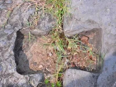 鱼磷石构成的坡面,凹凸不平,使漫过坝面的水流成跳跃式下泄,减缓了流速,不至对坝体构成威胁。洪水带来的泥沙沉积于石缝之中,反而可以起到加固大坝的作用。