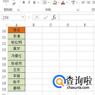 比如,下图中A11:A19这区域单元格的姓名。要从中找到“张”姓的人名。