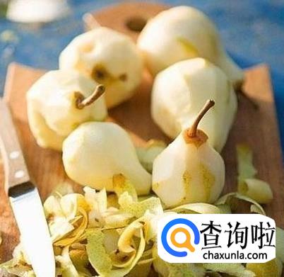 先把梨子用盐水泡一会儿,然后去掉外皮,在泡梨子的时候注意一定要把皮上面的东西清洁干净,然后去掉的皮留下。