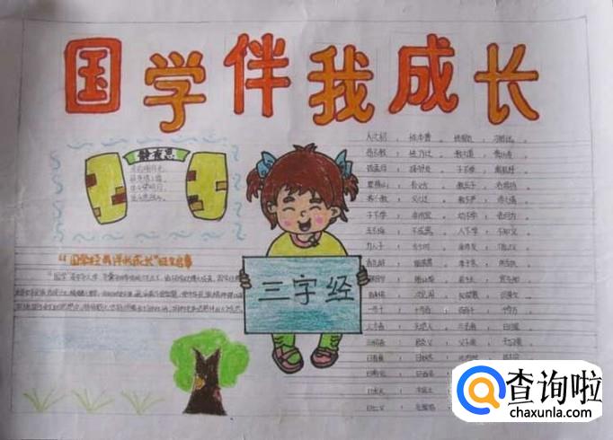 手抄报也要有主题,在中间部分写好主题,围绕主题写手抄报的内容。国学方面,三字经就是很好的素材,抄写三字经,穿插一些相关的内容或者故事。都可以完成国学手抄报。
