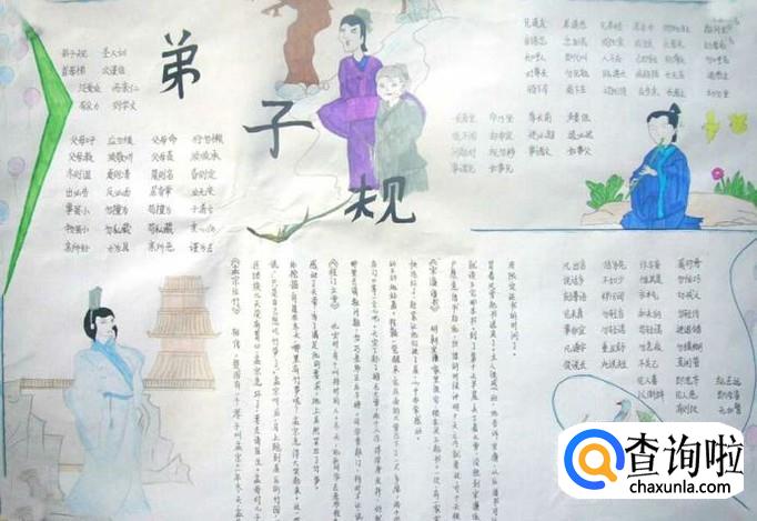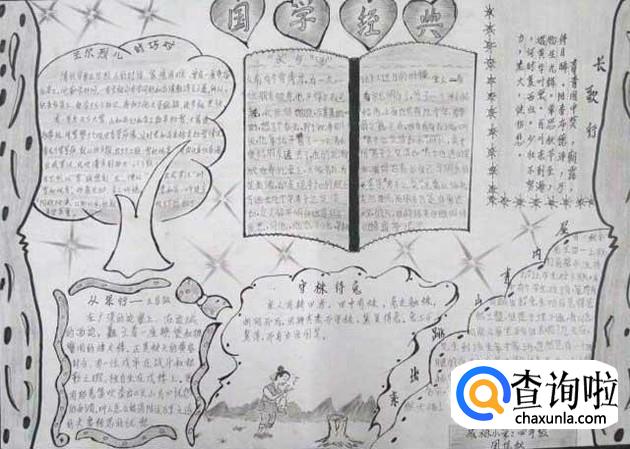 如果绘画基础好,也可以画一些古人的图片,展现古人学习的风采,穿插国学内容,手抄报看起来会更加形象、经典。