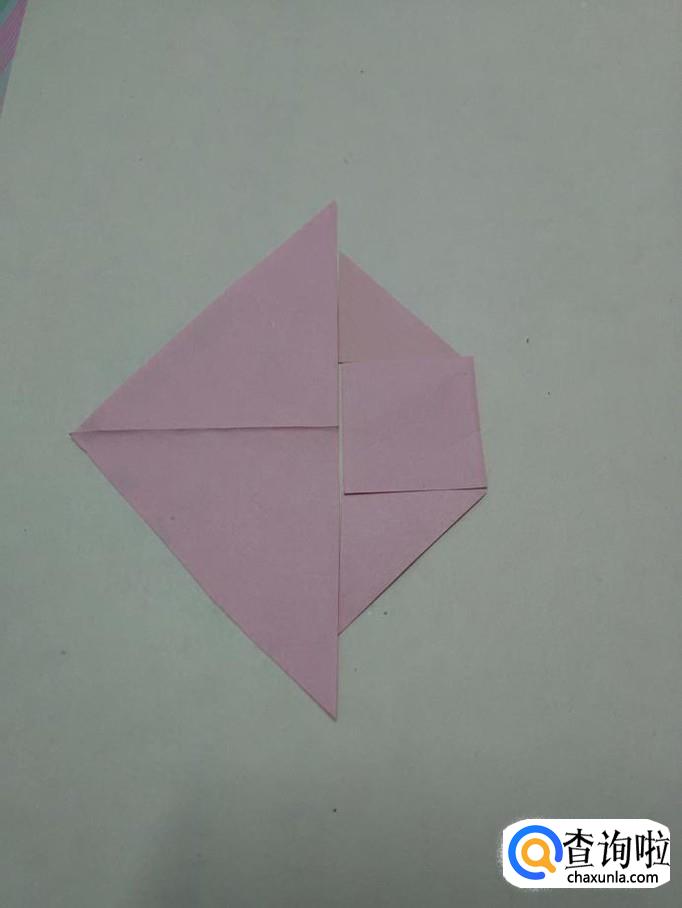 把两个最小的三角形放在正方形的两边,拼成小鱼的身体。这是第二层。
