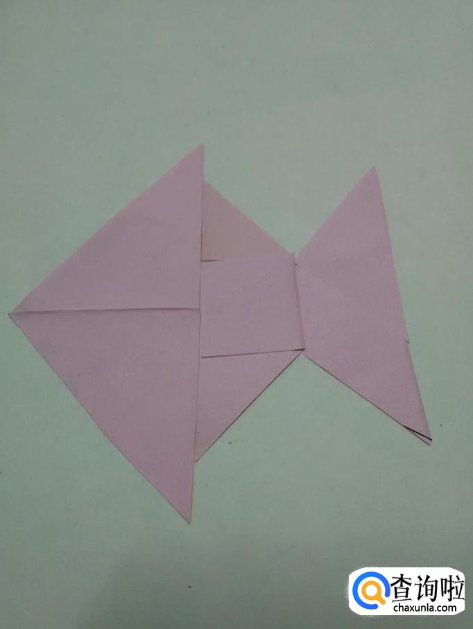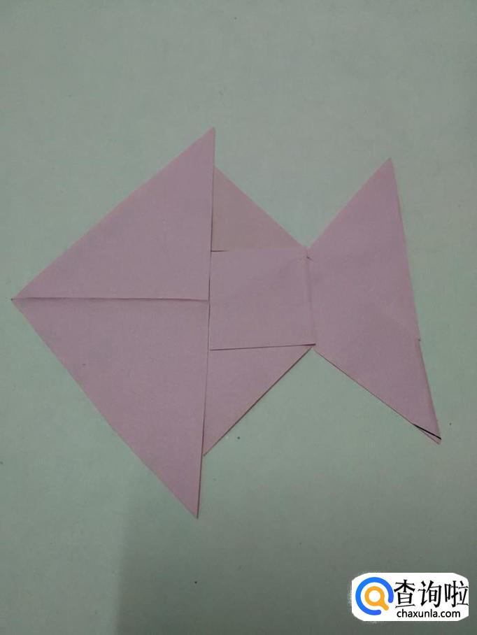 用两个最大的三角形摆在一起,拼成小鱼的头。这是第一层。