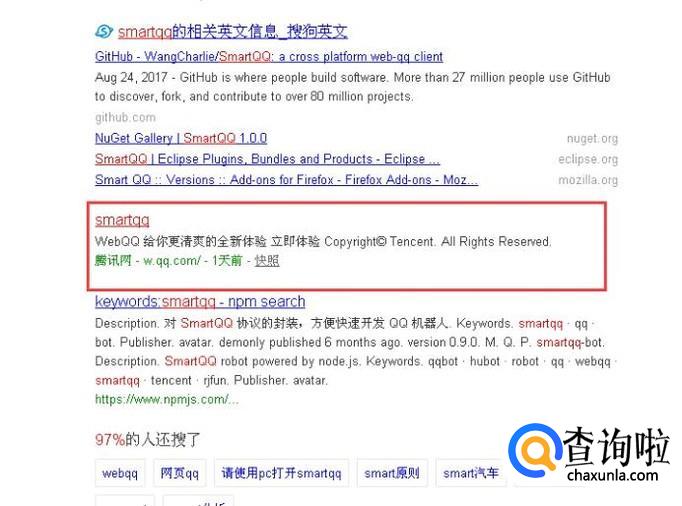 首先打开搜狗浏览器,搜索SmartQQ,选择官网点击进入。