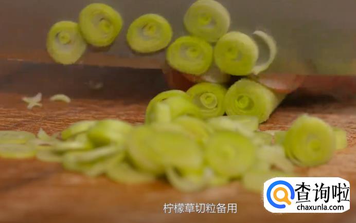 首先备料,将葱去头,姜切成片,柠檬草切粒备用。