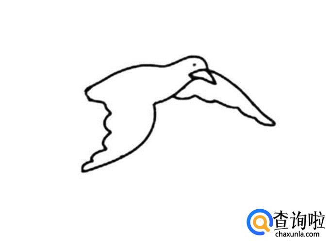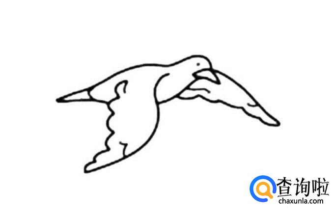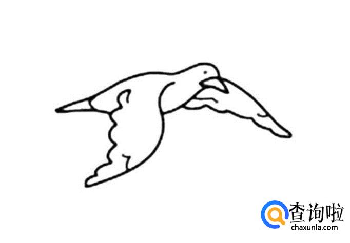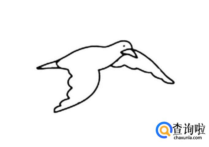 接着,勾画出海鸥的尾巴。注意,飞翔中的海鸥,我们一般看不见它的脚,所以不要画脚。否则会显得画蛇添足。