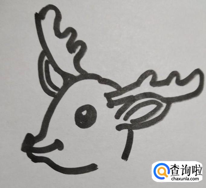 画出小鹿的鹿角,小鹿的两只鹿角大小要一致。
