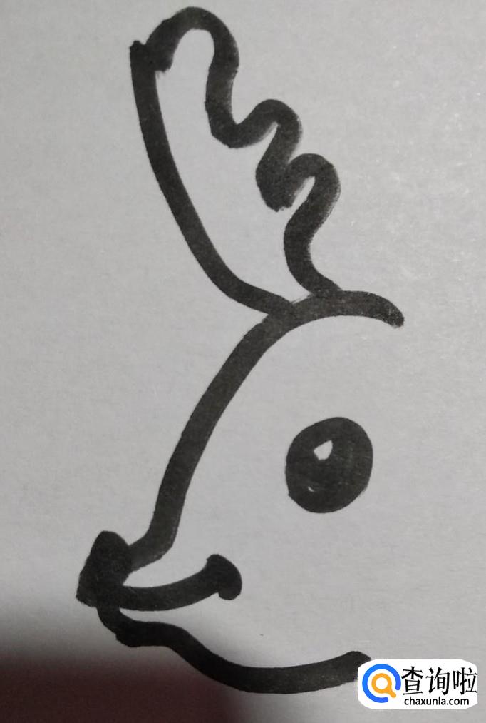 先画出小鹿的头部轮廓,小鹿的头部是个侧面左端是个尖尖的鼻子。